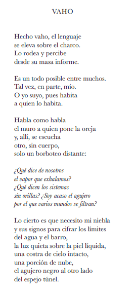 Una nevada, una gárgola, un cuerpo de agua, o mejor dicho un charco, o mejor dicho el mar, o mejor dicho esa humedad que nos da vida, son los lugares a donde nos lleva Stephen, porque nunca va solo a esos parajes donde se detiene al filo de los abismos, y nos suelta la pregunta fulminante: ¿qué dice de nosotros el vapor que exhalamos? ¿soy acaso el agujero por el que varios mundos se filtran?