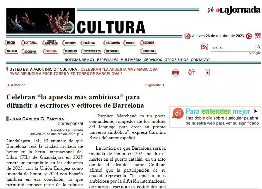 A mi me deslumbra saber que más que un alquimista o una deidad de otras tierras, Stephen es un maestro de lengua y literatura españolas que trabaja en universidades estadunidenses e inglesas mostrando los prodigios de nuestro idioma. Porque las lenguas son más que medios de comunicación y eso es lo que la poesía nos revela, que el lenguaje es «también una música, una pasión y un sueño”, como decía Borges.